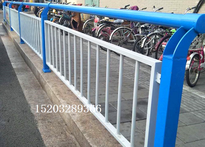 人行道護(hù)欄、道邊護(hù)欄、路側(cè)護(hù)欄、道路護(hù)欄面管采用穿插連接。柱欄藍(lán)白拼色設(shè)計(jì)線條 流暢、簡(jiǎn)潔美觀外表給人們帶來(lái)了視覺(jué)的享受。