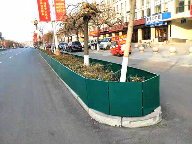 綠籬防寒板、綠籬擋雪板、綠籬擋鹽板產(chǎn)品特點: 1.擋風(fēng)防寒,起到保護植物生長環(huán)境的功能。 2.能阻擋融雪劑等化學(xué)物質(zhì)進入道邊綠植土壤,侵蝕樹木。 3.擋雪板表面經(jīng)過靜電粉末噴涂不腐處理,能抵御三酸一堿水溶液侵蝕,板體具有強的鋼性和韌性,不風(fēng)雪破壞能力強,不老化使用壽命長。 4.擋雪板可拆卸,能反復(fù)使用。 5.安裝、拆卸簡便。 6.擋雪板可根據(jù)客戶要求制成各種顏色,安裝效果整齊美觀,為城市增添了一道靚麗的風(fēng)景線。 7.戶外廣告宣傳的載體。